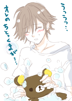 なぜくららがりらくまを洗っているかというと、ちぃがコトの最中にくららのおしりの下に敷いて案の定白濁で汚してしまったからです。